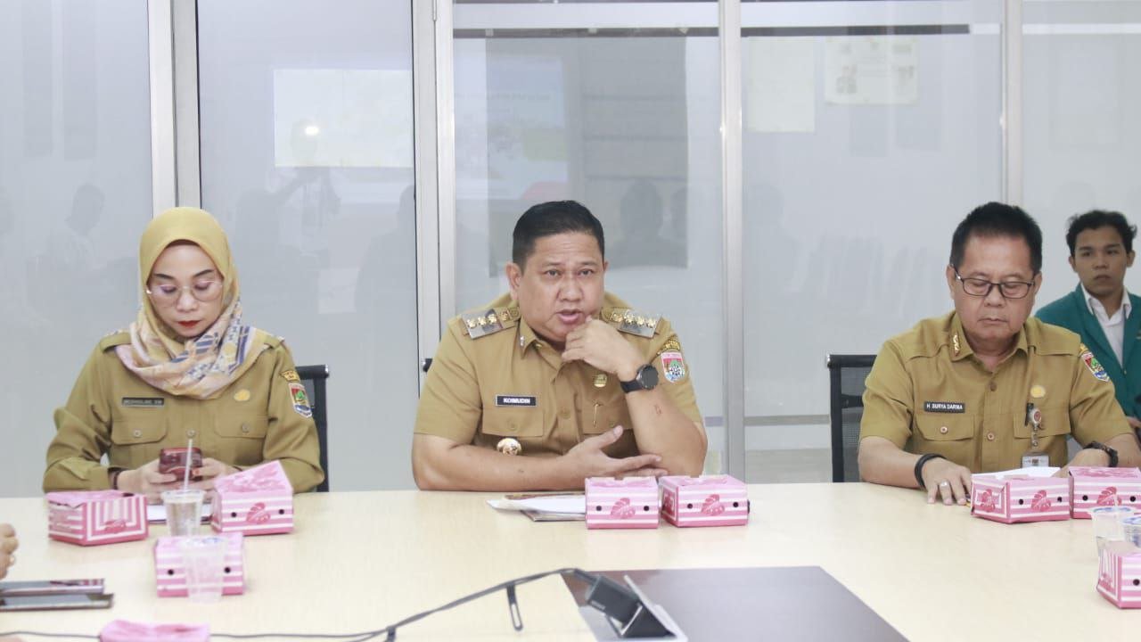 LUBUK LINGGAU – Penjabat (Pj) Wali Kota Lubuk Linggau, H Koimudin didampingi Asisten II Bidang Ekonomi dan Pembangunan, H Surya Darma memimpin rapat pembahasan terkait kelangkaan gas 3 Kg.