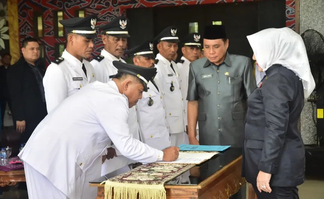Dia juga berpesan agar kepala desa terus meningkatkan pelayanan publik, melanjutkan serta menuntaskan program pembangunan desa, dan menjaga koordinasi yang baik dengan seluruh pemangku kepentingan.